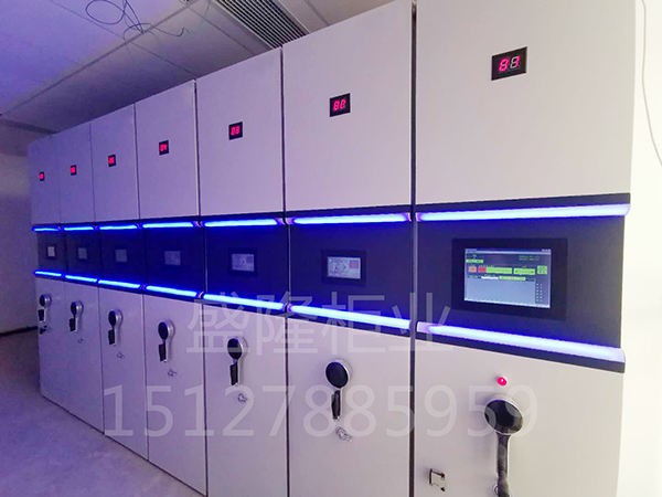 電動密集架的工作運轉過程左右邊架一般為雙層移動架或門板,門板有鋼質和玻璃兩種。密集架軌道組有三種形式:地面式、斜板地面式和埋入式。埋入式軌道組的予留溝槽面的水平偏差應不大于3mm/m,全長不大于10mm。傳動機構采用精密滾子鏈和調心軸承,傳動靈活平穩,搖力輕便。密集架手把式折疊式,可避免通行障礙。移動密集架每列密集架均裝有制動裝置。邊架裝有鎖具,用于整組架鎖閉。底架組為整體式火分段組合式,加工精度高,具有對接互換性,節型范圍寬,便用于運輸安裝等有點。采用架板和有扣勾的掛板和擋桿,組裝后平整、牢固。