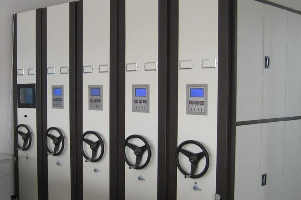 會計密集架柜體之間的接觸面均有緩沖和磁性密封膠條,頂部有防塵板,底部有防 鼠裝置,具有良好的防塵、防鼠、防潮和防火功能。 傳動機構采用鏈條和精密軸承,傳動靈活平衡,只用兩個手指即可轉動,層板層距根據需要可自由調整。 U型可移動書檔,每列加裝制動閥。